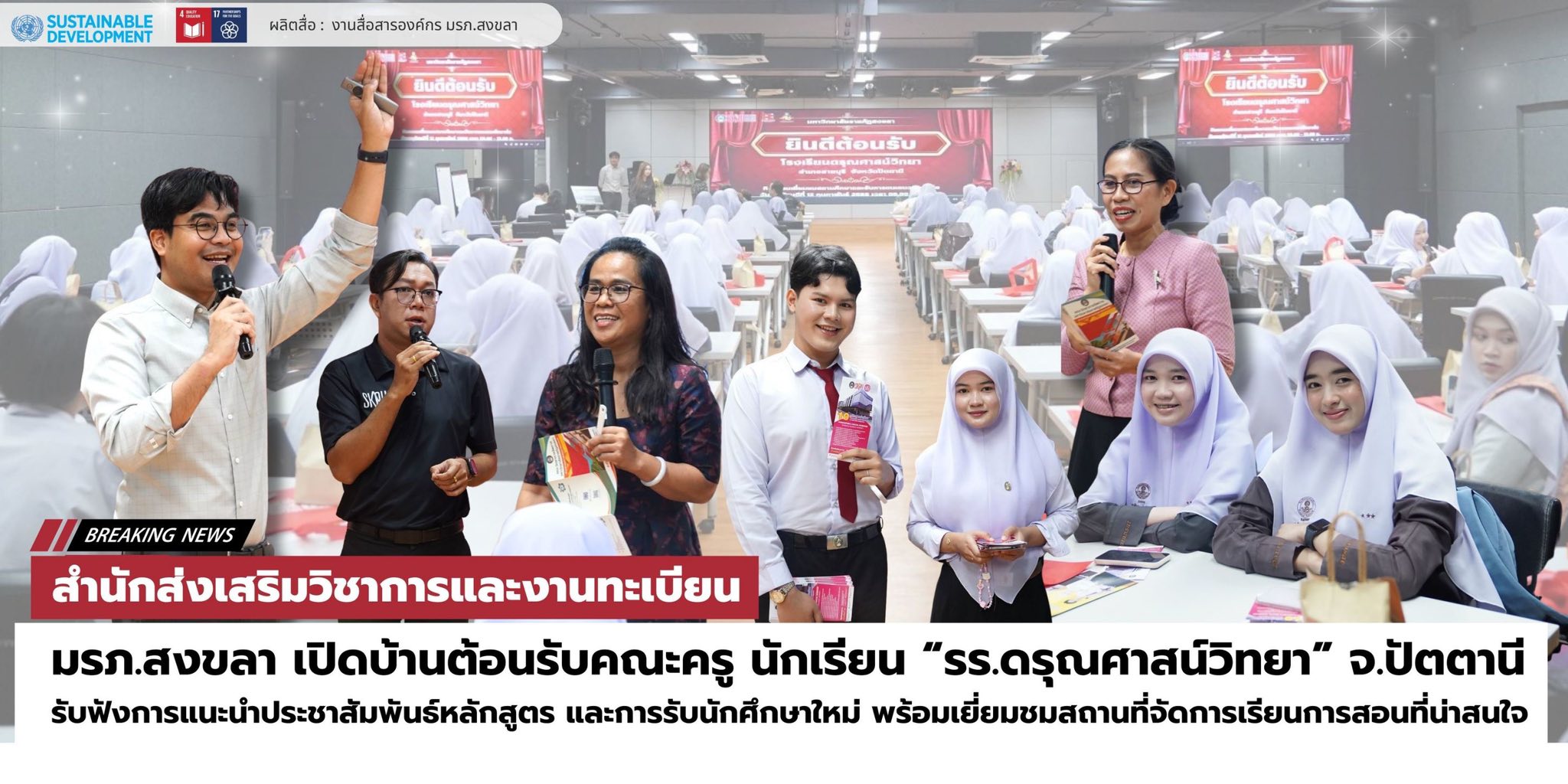สำนักส่งเสริมวิชาการและงานทะเบียน มรภ.สงขลา นำทีมต้อนรับคณะครู นักเรียน โรงเรียนดรุณศาสน์วิทยา จ.ปัตตานี เข้ารับฟังการแนะนำประชาสัมพันธ์หลักสูตร และการรับนักศึกษาใหม่ พร้อมเยี่ยมชมสถานที่จัดการเรียนการสอนที่น่าสนใจ