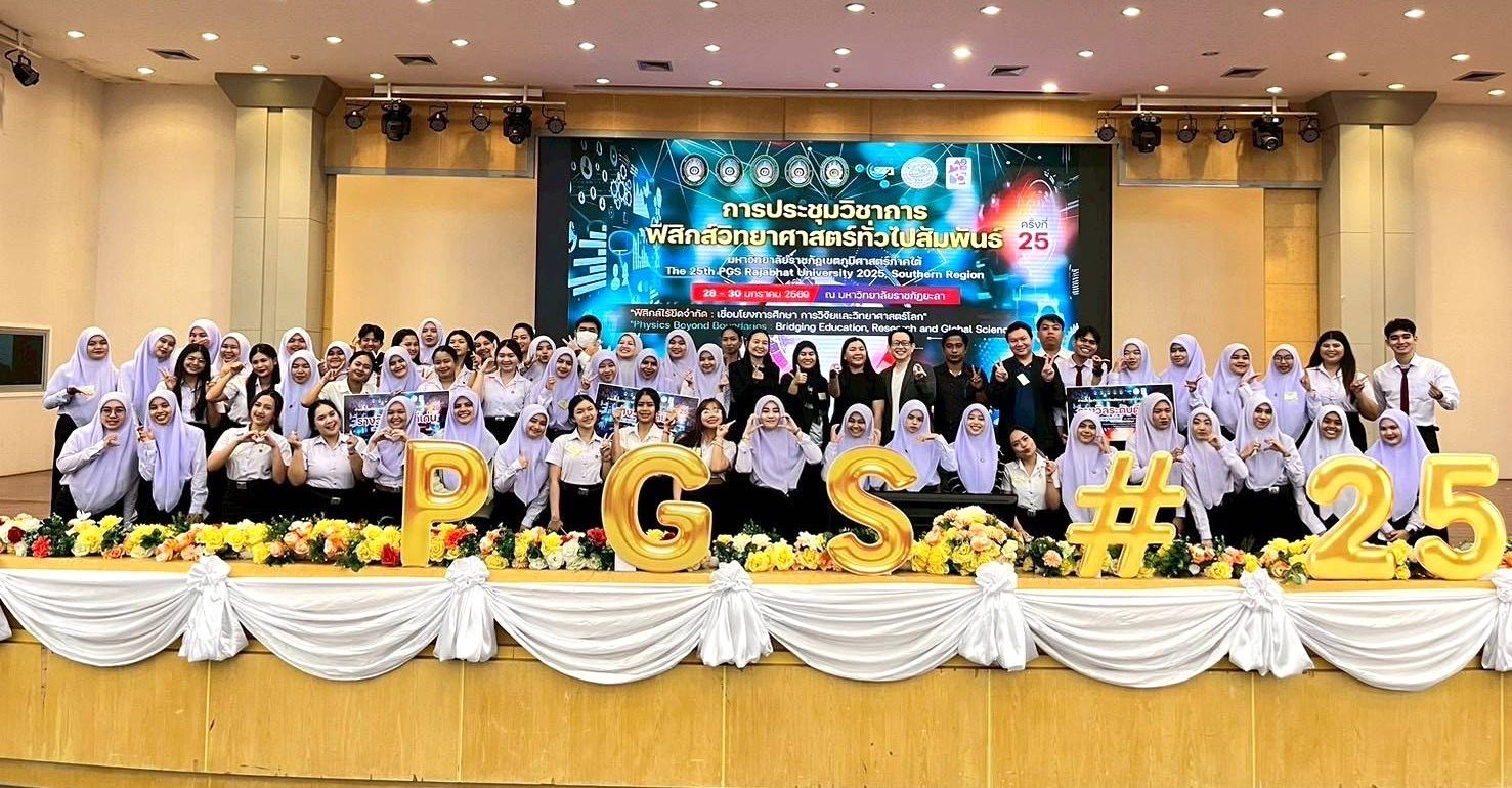 อาจารย์และนักศึกษาสาขาวิชาวิทยาศาสตร์ทั่วไป คณะครุศาสตร์ แทคทีมสาขาวิชาฟิสิกส์ คณะวิทยาศาสตร์และเทคโนโลยี มรภ.สงขลา คว้า 8 รางวัลนำเสนอผลงานวิจัยด้านวิทยาศาสตร์ฯ และด้านการศึกษา เวทีประชุมวิชาการฟิสิกส์และวิทยาศาสตร์ทั่วไปสัมพันธ์ มหาวิทยาลัยราชภัฏเขตภูมิศาสตร์ภาคใต้ ครั้งที่ 25