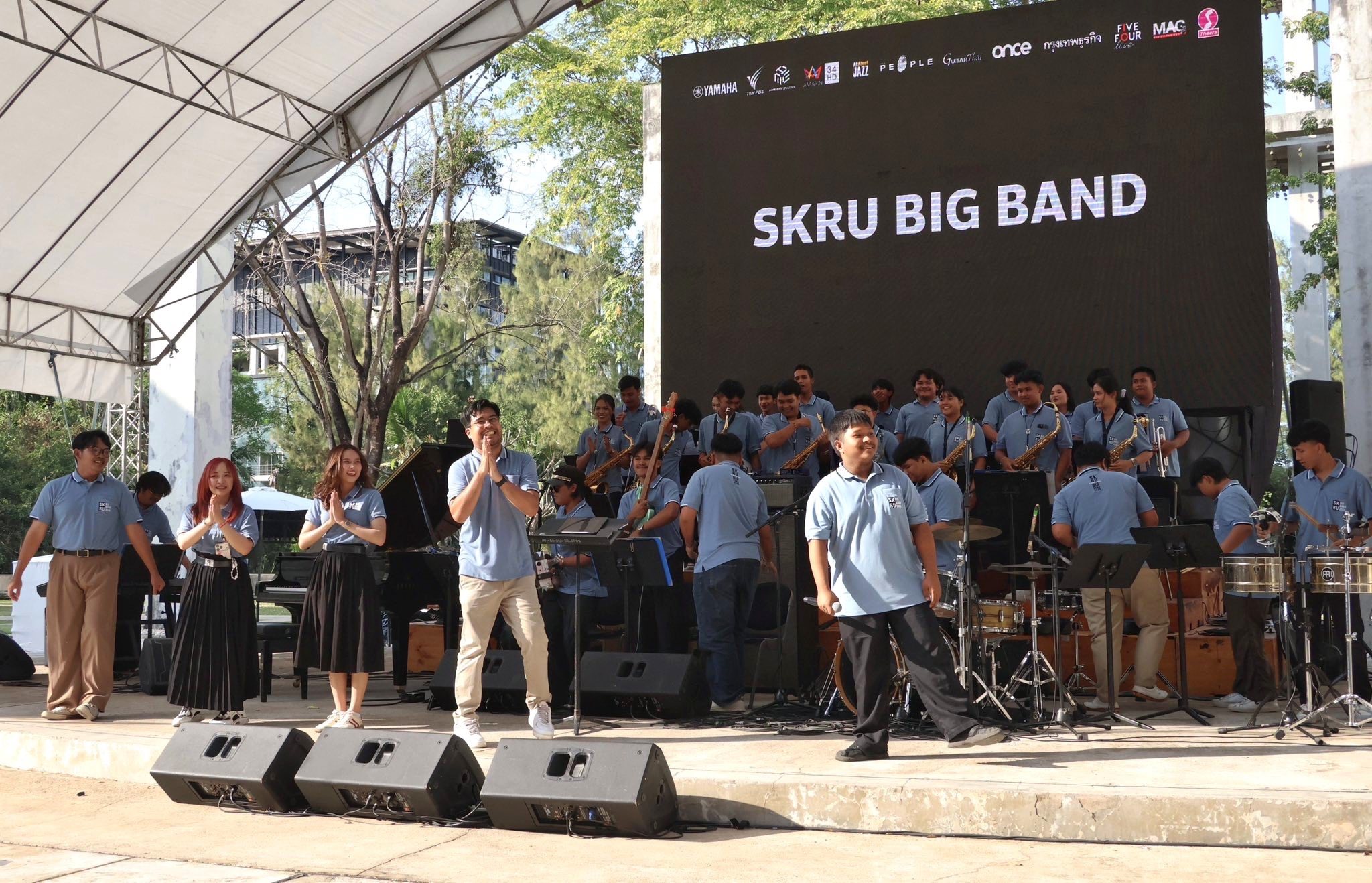 คณาจารย์และนักศึกษาวง SKRU Jazz Band และ วง SKRU Big Band สาขาวิชาดุริยางคศิลป์ตะวันตก คณะศิลปกรรมศาสตร์ มรภ.สงขลา ยกทีมร่วมแสดงดนตรีในงาน “TIJC 2026” พร้อมนำบทเพลง “Where the light begins” ที่มีเนื้อหาให้กำลังใจชาวหาดใหญ่ที่ประสบมหาอุทกภัย แต่งโดย อ.สหภัส อักษรถึง โชว์ความไพเราะบนเวที