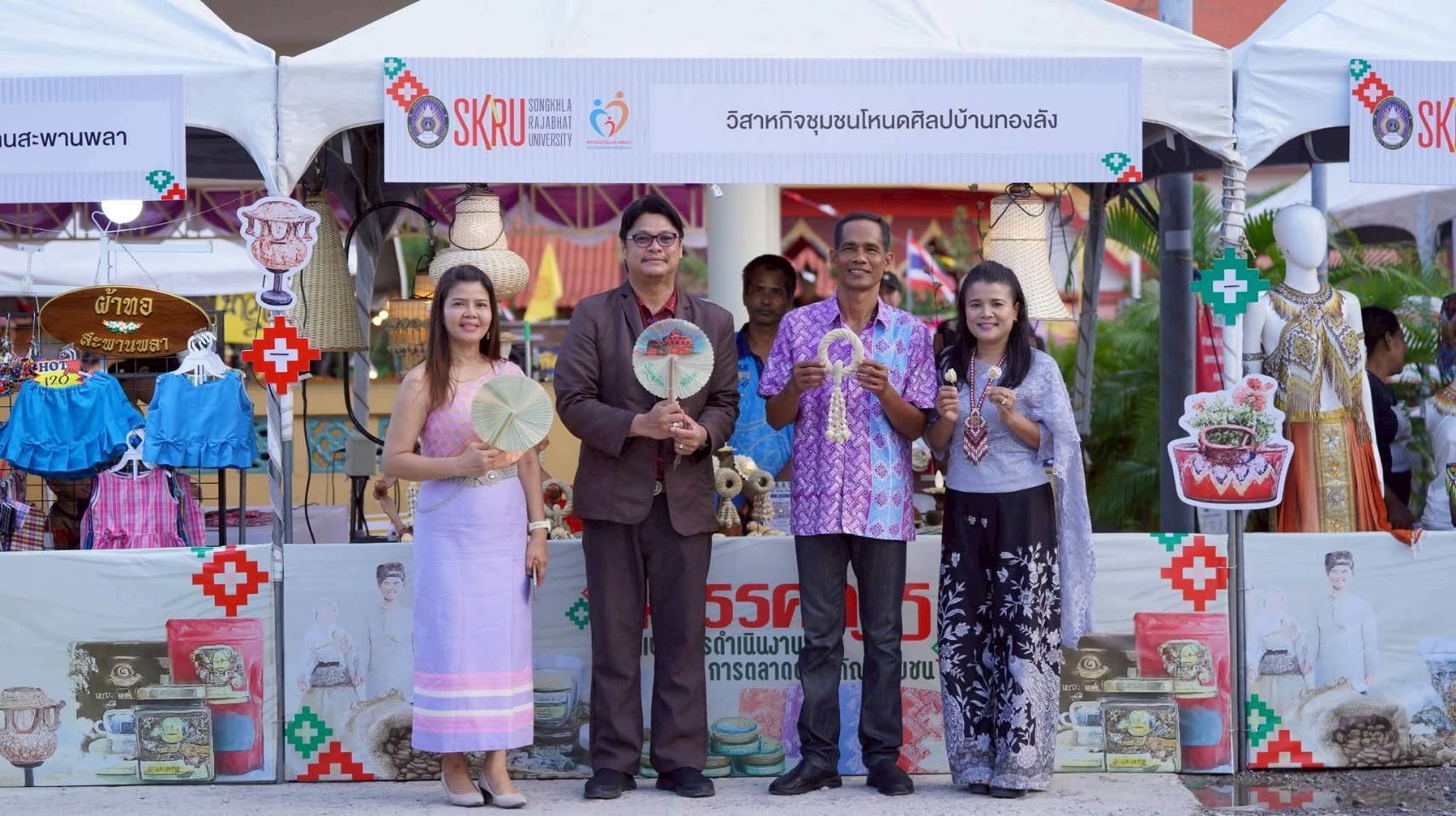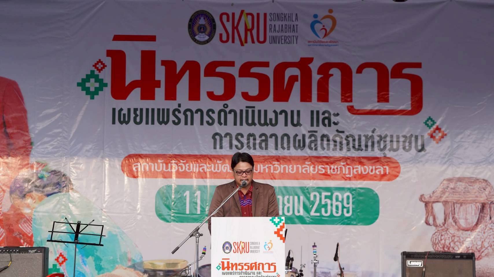 สถาบันวิจัยและพัฒนา มรภ.สงขลา จัดงาน “นิทรรศการเผยแพร่การดำเนินงานและการตลาดผลิตภัณฑ์ชุมชน” ภายใต้โครงการยกระดับมาตรฐานผลิตภัณฑ์ชุมชน (ด้วยหลัก BCG MODEL) วันที่ 11-12 เม.ย. 69 ณ วัดแหลมพ้อ ต.เกาะยอ คัดสรรหลากผลิตภัณฑ์ที่โดดเด่นจากชุมชนแฟลตฟอร์มออนไลน์มาให้ชิม ช้อป พร้อมสร้างเครือข่ายผู้ประกอบการในท้องถิ่นขยายสู่ตลาดระดับประเทศ . สถาบันวิจัยและพัฒนา มหาวิทยาลัยราชภัฏสงขลา (มรภ.สงขลา) จัดกิจกรรมนิทรรศการเผยแพร่การดำเนินงานและการตลาดผลิตภัณฑ์ชุมชน ภายใต้โครงการยกระดับมาตรฐานผลิตภัณฑ์ชุมชน (ด้วยหลัก BCG MODEL) ประจำปี พ.ศ. 2569 ระหว่างวันที่ 11-12 เมษายน 2569 ณ วัดแหลมพ้อ ตำบลเกาะยอ อำเภอเมืองสงขลา จังหวัดสงขลา โดย ผศ.พิเชษฐ์ จันทวี อธิการบดี มรภ.สงขลา ได้มอบหมายให้ ผศ.ดร.กรฤต นิลวานิช รองอธิการบดีฝ่ายกายภาพและพัฒนาท้องถิ่น เป็นประธานในพิธีเปิด กล่าวรายงานโดย รศ.ดร.สายฝน ไชยศรี รองผู้อำนวยการฝ่ายบริการวิชาการและรับใช้สังคม สถาบันวิจัยและพัฒนา มรภ.สงขลา . ภายในงานมีการแสดงสาธิตผลิตภัณฑ์ชุมชน และสาธิตการประกอบอาชีพ การร้อยลูกปัดโนรา การทำขนมจากตาลโตนด สนุกสนานไปกับการแข่งขันกีฬาพื้นบ้าน อิ่มอร่อยกับการแข่งขันกินขนมจากตาลโตนด เพลิดเพลินกับการแสดงดนตรีสด พิเศษสุด! เพียงมาร่วมงานและลงทะเบียน ลุ้นรับของที่ระลึกฟรี . ผศ.ดร.กรฤต นิลวานิช กล่าวว่า วัตถุประสงค์ของการจัดโครงการในครั้งนี้ มุ่งเน้นส่งเสริมช่องทางการตลาดในการจำหน่ายผลิตภัณฑ์ชุมชนและจัดงานมหกรรมผลิตภัณฑ์ชุมชน โดยสร้างเครือข่ายผู้ประกอบการในท้องถิ่น เพื่อขยายสู่ตลาดระดับประเทศ พร้อมสนับสนุนการรวมกลุ่มเป็นคลัสเตอร์พืชหรือสัตว์เศรษฐกิจ เพิ่มมูลค่าแบบครบวงจร และรวบรวมสินค้าชุมชนที่โดดเด่นจากชุมชนแฟลตฟอร์มออนไลน์ . การจัดงานในครั้งนี้นับว่าเป็นสิ่งดีที่ทางผู้จัดโครงการนำโดย บุคลากรสังกัดสถาบันวิจัยและพัฒนา พร้อมด้วยคณาจารย์จากคณะมนุษยศาสตร์และสังคมศาสตร์ มรภ.สงขลา ได้ร่วมกันเล็งเห็นถึงความสำคัญของการจัดโครงการ อีกทั้งยังสร้างเครือข่ายความร่วมมือ การรับรู้ในผลิตภัณฑ์ชุมชน โอกาสทางการตลาด แรงบันดาลใจ และเป็นเวทีแลกเปลี่ยนองค์ความรู้และนวัตกรรมร่วมกัน . ด้าน รศ. ดร.สายฝน ไชยศรี กล่าวว่า การจัดโครงการในครั้งนี้มีวิสาหกิจชุมชนในโครงการยกระดับมาตรฐานผลิตภัณฑ์ชุมชนมาร่วมจัดแสดงสาธิตผลิตภัณฑ์ชุมชน จำนวน 9 กลุ่ม และคาดว่าจะมีประชาชนเข้าร่วมชมงานนับหลายร้อยคน ซึ่งคาดหวังว่ากิจกรรมในครั้งนี้สามารถเพิ่มช่องทางจำหน่ายผลิตภัณฑ์ชุมชน และเพิ่มเครื