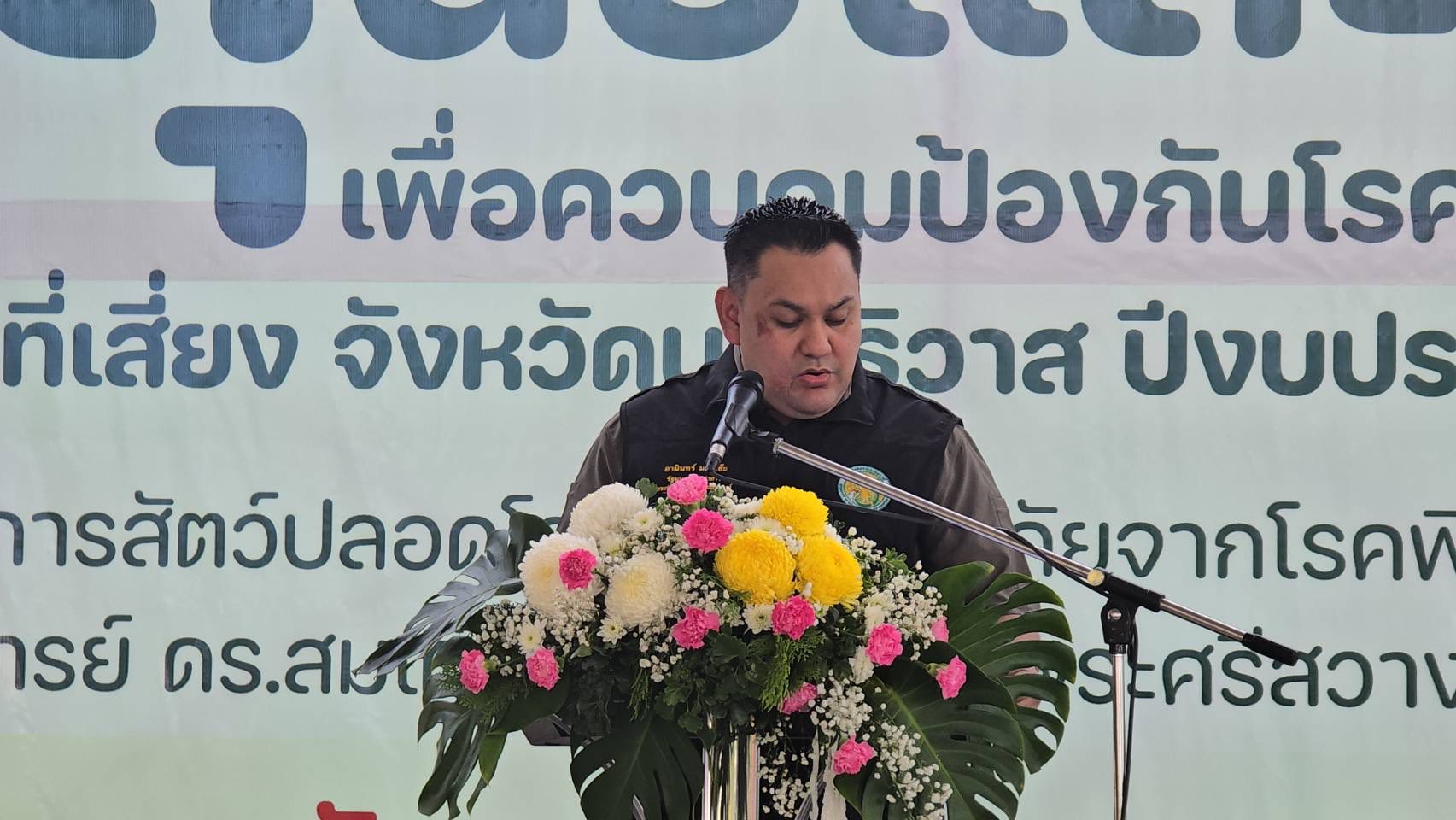 นายอามินทร์ มะยูโซ๊ะ รัฐมนตรีช่วยว่าการกระทรวงเกษตรและสหกรณ์ กล่าวในโอกาสเป็นประธานพิธีเปิดโครงการเร่งรัดผ่าตัดทำหมันสุนัขและแมว เพื่อควบคุมป้องกันโรคพิษสุนัขบ้าในพื้นที่เสี่ยง จังหวัดนราธิวาสประจำปีงบประมาณ พ.ศ. 2569 ภายใต้โครงการสัตว์ปลอดโรค คนปลอดภัยจากโรคพิษสุนัขบ้า ตามพระปณิธาน ศาสตราจารย์ ดร.สมเด็จเจ้าฟ้าฯ กรมพระศรีสวางควัฒน วรขัตติยราชนารี ว่าปัญหาประชากรสุนัขและแมวจรจัด เป็นปัญหาที่ส่งผลกระทบในหลายมิติ ทั้งด้านสุขอนามัย ความปลอดภัยของประชาชน และที่สำคัญคือความเสี่ยงต่อการแพร่ระบาดของโรคพิษสุนัขบ้า ซึ่งเป็นโรคร้ายแรงที่สามารถติดต่อจากสัตว์สู่คนได้ และเป็นเรื่องที่เราทุกคนต้องเฝ้าระวัง อย่างใกล้ชิด แม้ในพื้นที่จังหวัดนราธิวาสยังไม่พบผู้ป่วยเสียชีวิตก็ตาม