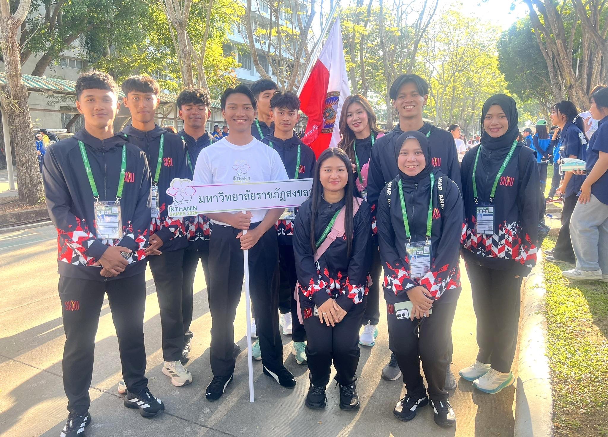 เมื่อวันที่ 9 มกราคม 2569 มหาวิทยาลัยราชภัฏสงขลา (มรภ.สงขลา) นำโดย ผศ.พิเชษฐ์ จันทวี อธิการบดี พร้อมด้วย ผศ.ธนัย ตันวานิช รองอธิการบดีฝ่ายพัฒนานักศึกษา อาจารย์วันฉัตร จารุวรรณโน รองอธิการบดีฝ่ายวางแผนและงบประมาณ ดร.ปริยาพิม ฉลองเดช ผู้ช่วยอธิการบดี ผศ.พลากร นัคราบัณฑิต ผู้ช่วยอธิการบดี พร้อมบุคลากร นำคณะนักกีฬา ผู้ฝึกสอนและผู้จัดการทีม เข้าร่วมพิธีเปิดการแข่งขันกีฬามหาวิทยาลัยแห่งประเทศไทย ครั้งที่ 51 อินทนิลเกมส์ (Inthanin Games 2026) ณ มหาวิทยาลัยแม่โจ้ (ม.แม่โจ้) จังหวัดเชียงใหม่