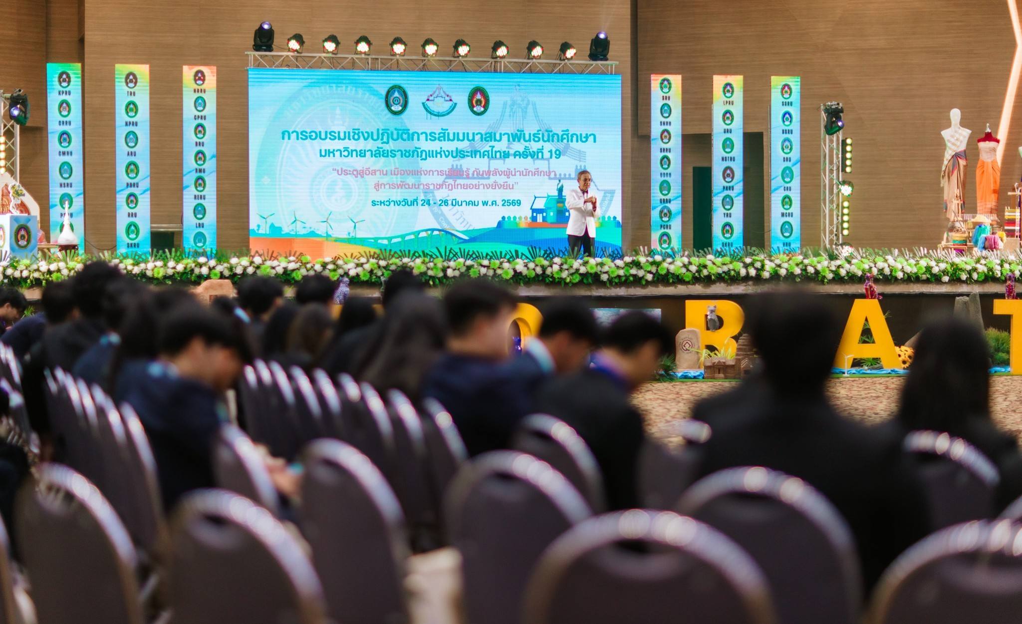 มรภ.สงขลา นำทีมบุคลากรกองพัฒนานักศึกษา พร้อมผู้นำนักศึกษา เยือน “ราชภัฏโคราช” ร่วมเวทีประชุมสัมมนาสมาพันธ์นักศึกษามหาวิทยาลัยราชภัฏแห่งประเทศไทย ครั้งที่ 19 สร้างเครือข่ายความร่วมมือ 38 ราชภัฏ เสริมสร้างสมรรถนะผู้นำรุ่นใหม่ กำหนดแนวทางดำเนินกิจกรรม บูรณาการความรู้สู่การพัฒนาท้องถิ่นอย่างยั่งยืน ผศ.พิเชษฐ์ จันทวี อธิการบดีมหาวิทยาลัยราชภัฏสงขลา (มรภ.สงขลา) มอบหมายให้ ผศ.ธนัย ตันวานิช รองอธิการบดีฝ่ายพัฒนานักศึกษา พร้อมด้วยตัวแทนบุคลากรกองพัฒนานักศึกษา สำนักงานอธิการบดี และผู้นำนักศึกษา มรภ.สงขลา เข้าร่วมโครงการประชุมสัมมนาสมาพันธ์นักศึกษามหาวิทยาลัยราชภัฏแห่งประเทศไทย ครั้งที่ 19 ระหว่างวันที่ 24-26 มีนาคม 2569 ณ หอประชุมราชภัฏรังสฤษฎ์ มหาวิทยาลัยราชภัฏนครราชสีมา จังหวัดนครราชสีมา โดยได้รับเกียรติจาก รศ.ดร.อดิศร เนาวนนท์ อธิการบดีมหาวิทยาลัยราชภัฏนครราชสีมา และประธานที่ประชุมอธิการบดีมหาวิทยาลัยราชภัฏแห่งประเทศไทย เป็นประธานในพิธีเปิด การประชุมสัมมนาในครั้งนี้ ถือเป็นเวทีสำคัญที่สมาพันธ์นักศึกษาฯ ใช้เป็นพื้นที่รายงานผลการดำเนินงานและแลกเปลี่ยนประสบการณ์การทำงานระหว่างองค์กรนักศึกษาจาก 38 มหาวิทยาลัยราชภัฏทั่วประเทศ วัตถุประสงค์หลักมุ่งเน้นการสร้างเครือข่ายความร่วมมือที่เข้มแข็งของผู้นำนักศึกษา เพื่อร่วมกันระดมความคิดและกำหนดแนวทางการดำเนินกิจกรรมนักศึกษาให้สอดคล้องกับบริบทของสังคมปัจจุบัน กิจกรรมที่จัดขึ้นภายในงานจะช่วยเสริมสร้างสมรรถนะผู้นำรุ่นใหม่ให้มีความกล้าคิด กล้าทำ และสามารถบูรณาการความรู้ไปสู่การแก้ปัญหาท้องถิ่นอย่างเป็นรูปธรรม ซึ่งเป็นหัวใจสำคัญของการเป็นสถาบันอุดมศึกษาเพื่อการพัฒนาท้องถิ่นอย่างยั่งยืน ข้อมูล/รูป กองพัฒนานักศึกษา มหาวิทยาลัยราชภัฏสงขลา และ เพจ มหาวิทยาลัยราชภัฏนครราชสีมา