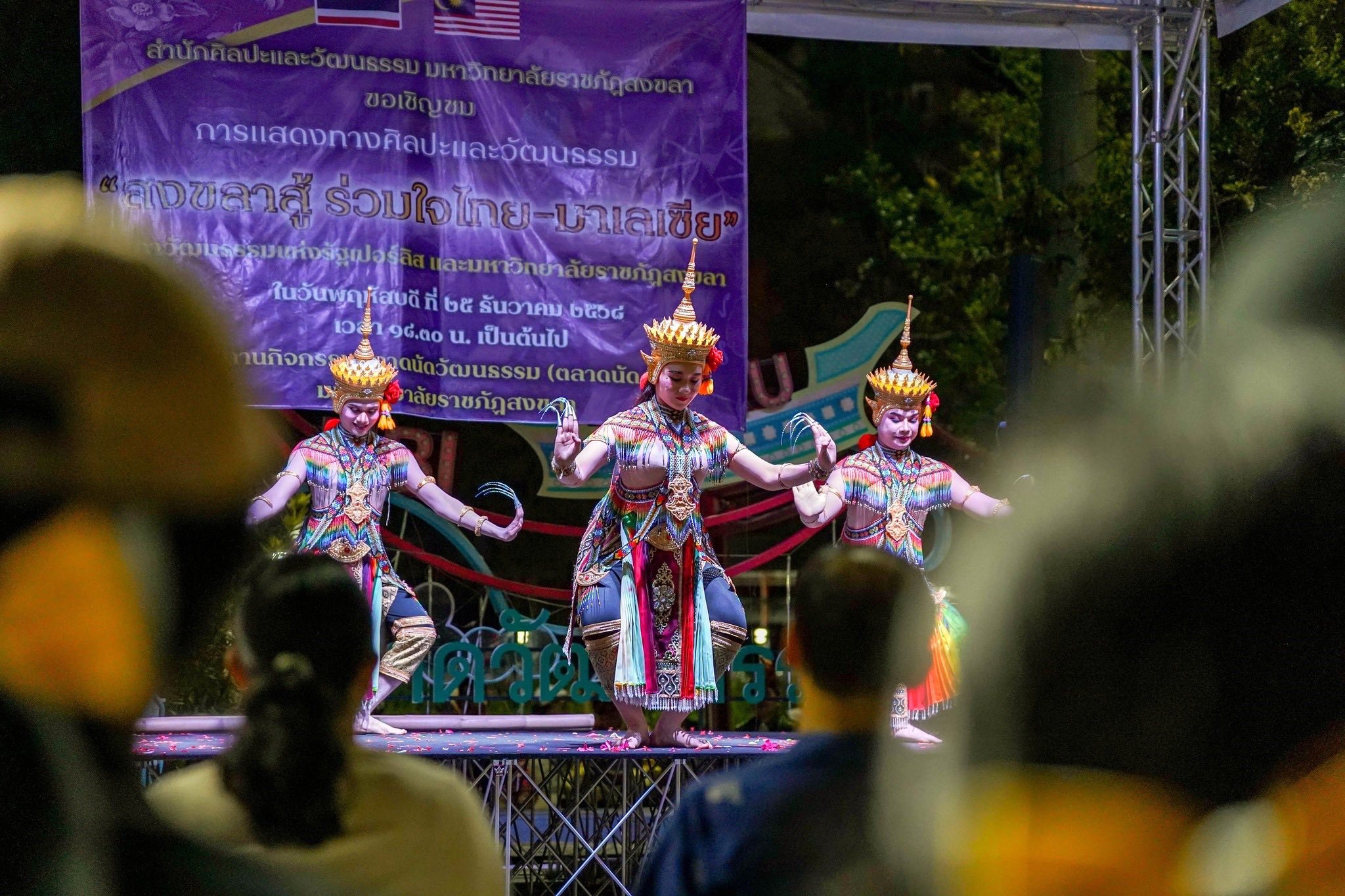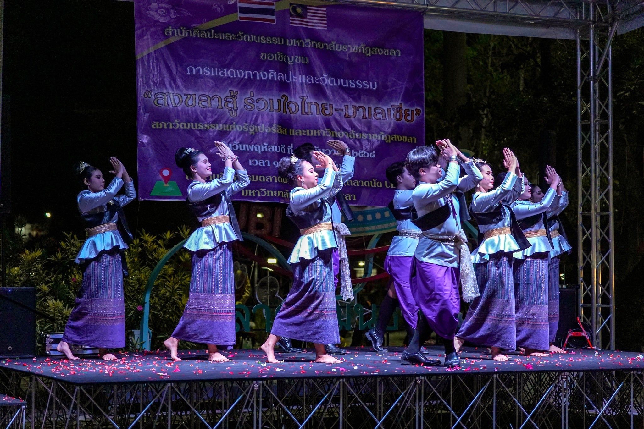 ทั้งนี้ การจัดกิจกรรมดังกล่าวมีจุดมุ่งหมายในการสร้างความสามัคคีและส่งกำลังใจให้แก่ชาวจังหวัดสงขลา ที่เพิ่งผ่านพ้นช่วงเวลาความยากลำบากจากเหตุอุทกภัยครั้งใหญ่ โดยใช้ศิลปะการแสดงเป็นสื่อกลางในการเชื่อมความสัมพันธ์ระหว่างไทยและมาเลเซีย ภายใต้แนวคิด “สงขลาสู้” ซึ่ง มรภ.สงขลา มุ่งหวังที่จะส่งเสริม อนุรักษ์ สืบสาน สร้างสรรค์และเผยแพร่ศิลปะและวัฒนธรรมท้องถิ่นและของชาติ โดยเฉพาะอย่างยิ่งวิถีวัฒนธรรมที่แสดงความเป็นตัวตนที่แท้จริงหรือเป็นรากแก้วของแผ่นดิน ดังนั้น การแลกเปลี่ยนทางด้านศิลปะและวัฒนธรรมในครั้งนี้ จึงไม่ได้เป็นเพียงการแสดง แต่เป็นการเชิดชูคุณค่าทางวัฒนธรรมของทั้งสองประเทศให้คงอยู่สืบไป