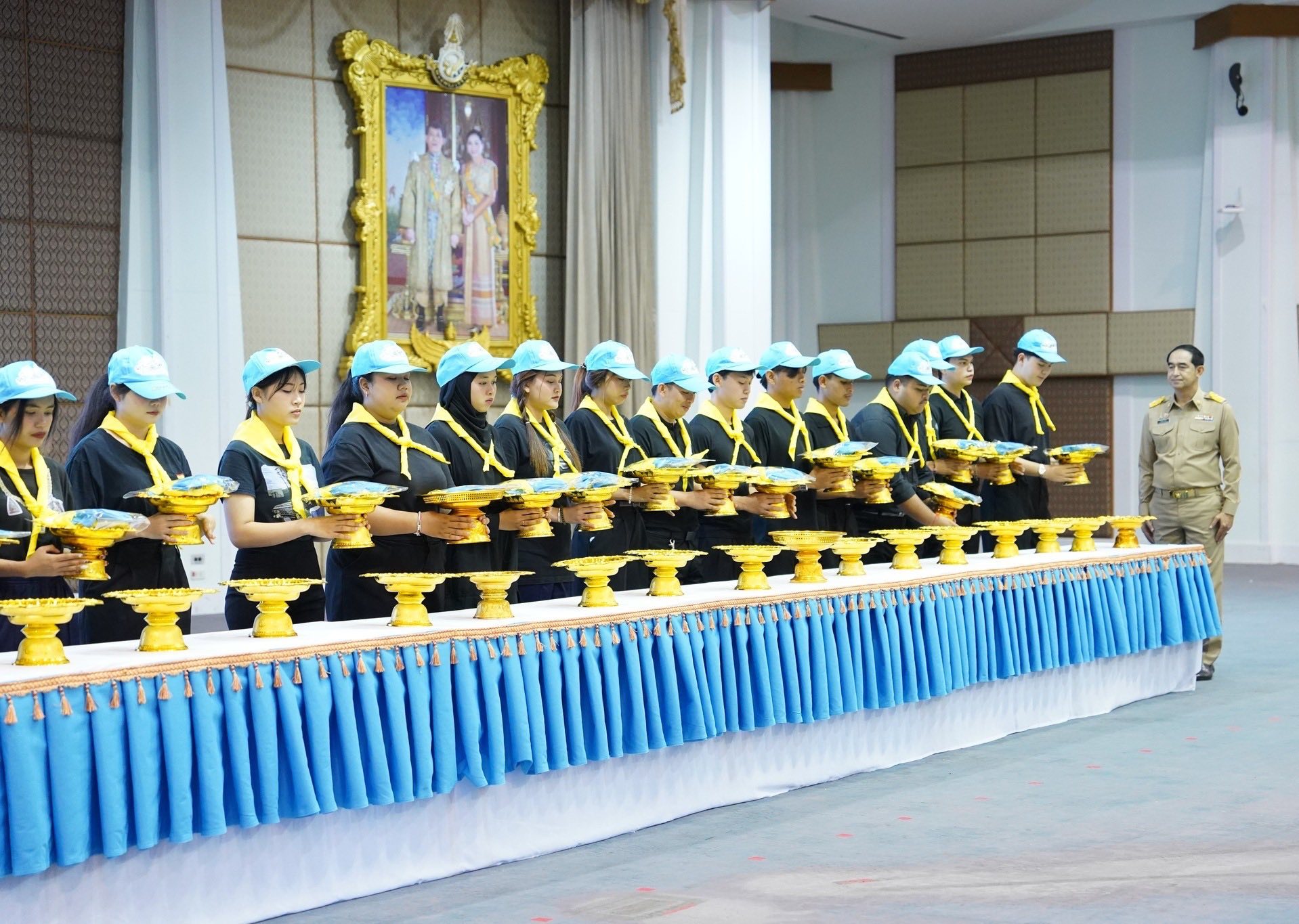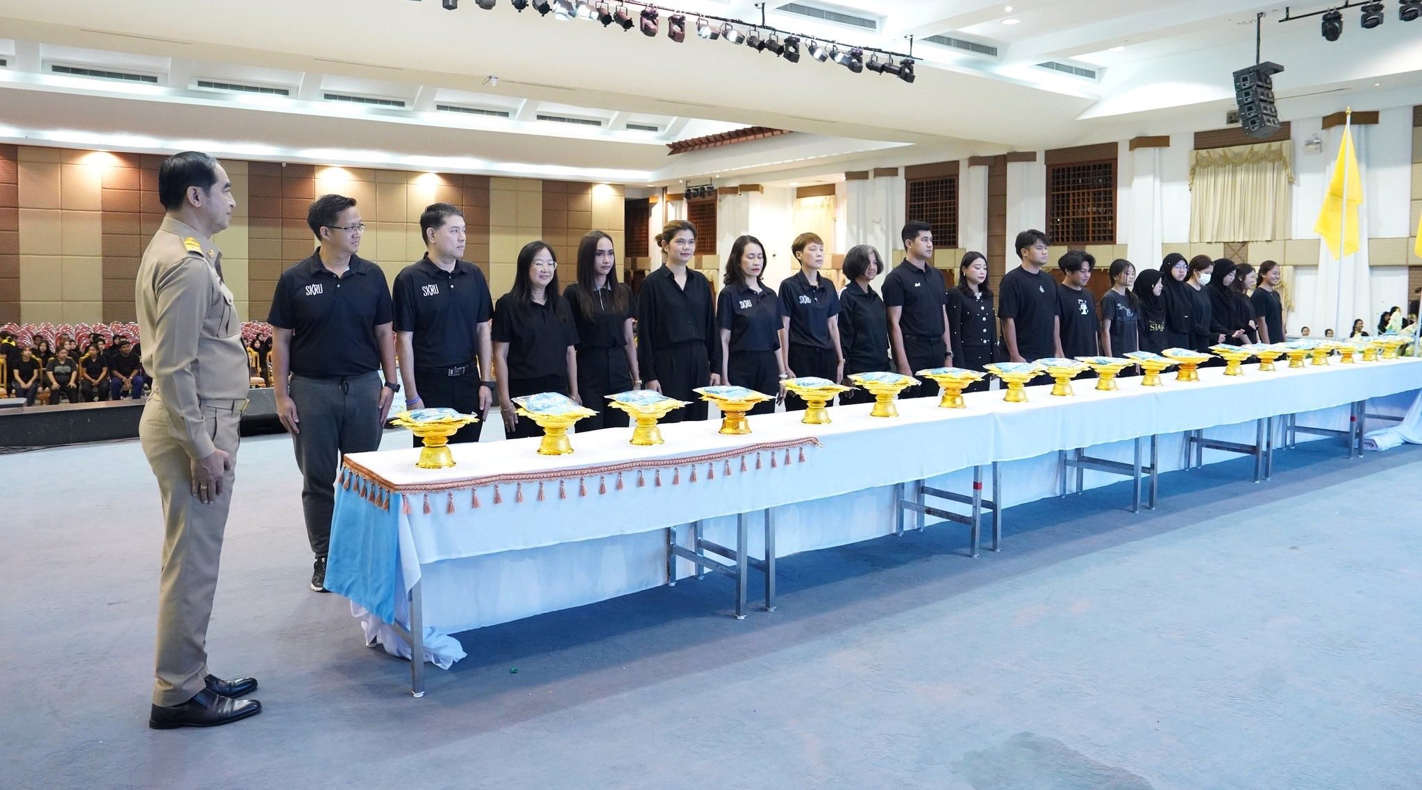 ภายในพิธีเริ่มด้วย ผศ.พิเชษฐ์ จันทวี เปิดกรวยดอกไม้ ถวายความเคารพ และกล่าวสำนึกในพระมหากรุณาธิคุณหน้าพระบรมฉายาลักษณ์ ก่อนเข้าสู่พิธีรับมอบสิ่งของพระราชทานแก่จิตอาสาพระราชทาน 904 ซึ่งการจัดพิธีดังกล่าวมีวัตถุประสงค์เพื่อปลูกฝังจิตสำนึกสาธารณะให้แก่นักศึกษา เสริมสร้างความสมัครสมานสามัคคีในการทำความดีด้วยหัวใจ เสียสละเวลา แรงกาย และสติปัญญาเพื่อประโยชน์ส่วนรวม สอดคล้องกับอัตลักษณ์มหาวิทยาลัยที่ว่า “เป็นคนดี มีทักษะชีวิต มีจิตสาธารณะ” และเป็นการบ่มเพาะคนรุ่นใหม่ให้เติบโตเป็นพลังสำคัญในการขับเคลื่อนกิจกรรมสาธารณประโยชน์ของสังคมและประเทศชาติ