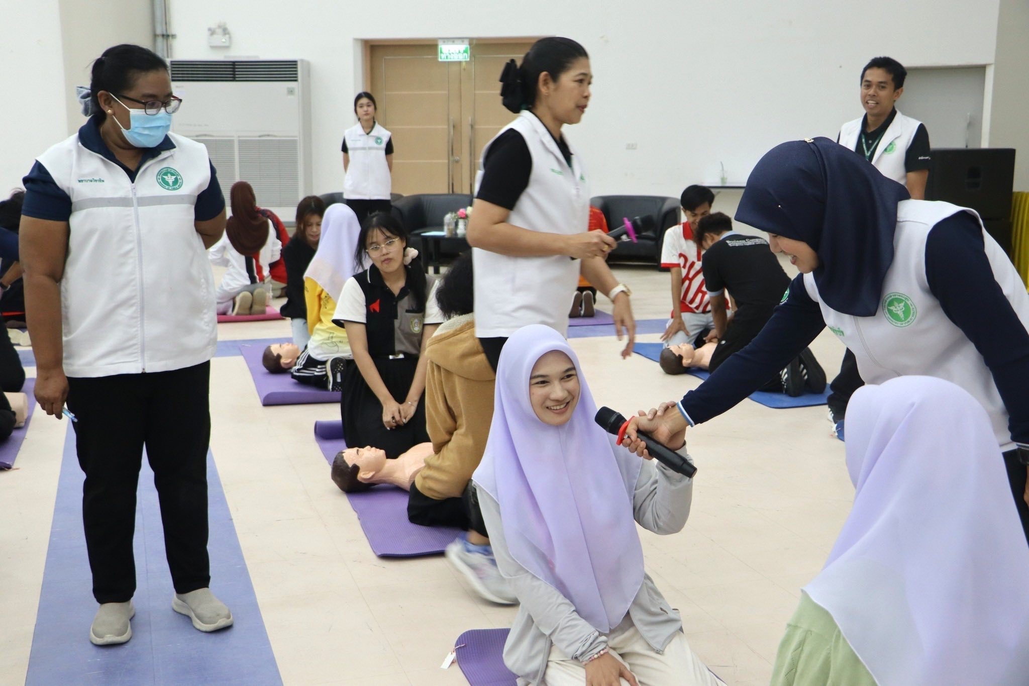 กองพัฒนานักศึกษา มรภ.สงขลา จัดอบรมการช่วยฟื้นคืนชีพขั้นพื้นฐานและการใช้เครื่องกระตุกหัวใจไฟฟ้าชนิดอัตโนมัติ เทียบเชิญทีมวิทยากรโรงพยาบาลสงขลา ถ่ายทอดทักษะด้านการปฐมพยาบาลและช่วยเหลือชีวิตผู้ที่มีภาวะหยุดหายใจ
