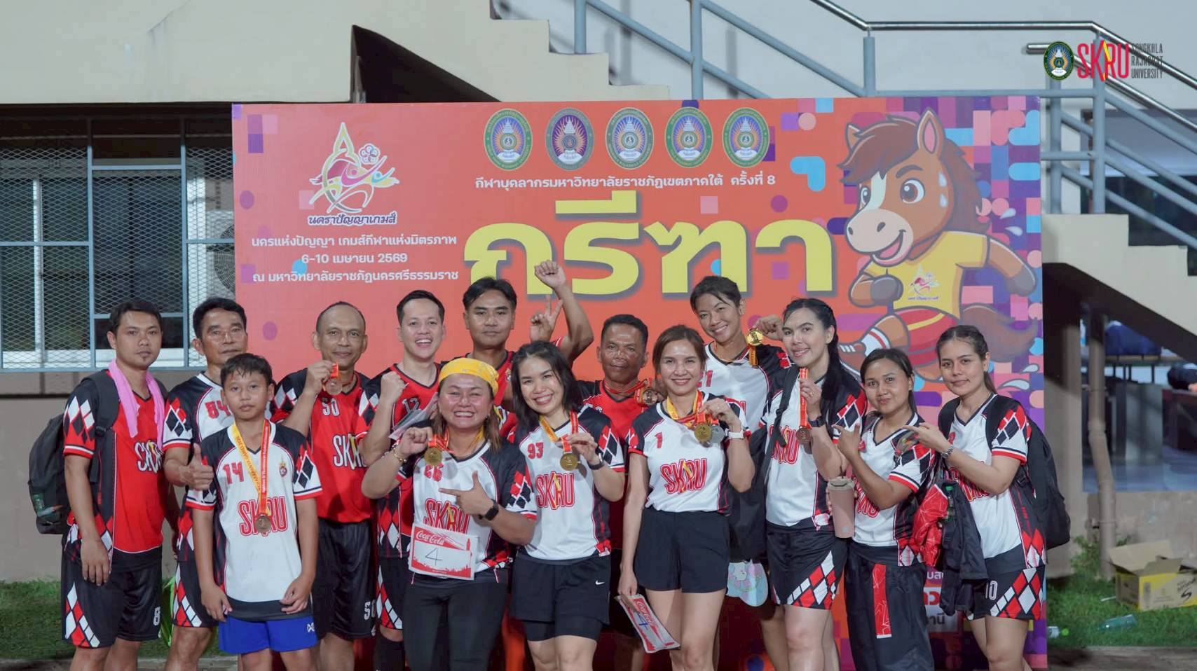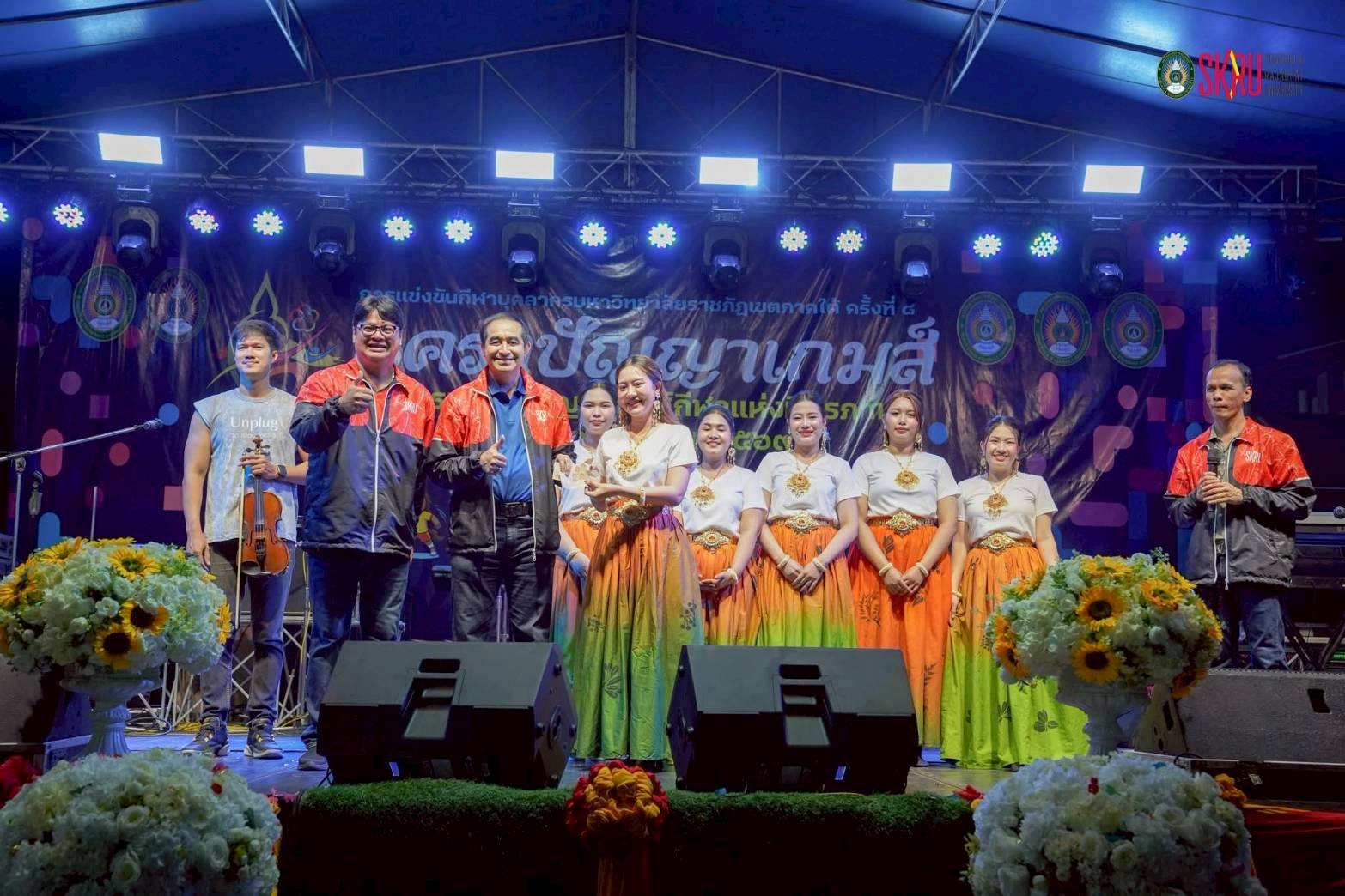 มรภ.สงขลา รับธงเป็นเจ้าภาพจัดการแข่งขันกีฬาบุคลากรราชภัฏภาคใต้ ครั้งที่ 9 ปี 2570 สืบสานเจตนารมณ์สร้างความรัก สามัคคี กระชับสัมพันธ์อันดีน้องพี่ 5 ราชภัฏภาคใต้ . เมื่อวันที่ 7 เมษายน 2569 ผศ.พิเชษฐ์ จันทวี อธิการบดีมหาวิทยาลัยราชภัฏสงขลา (มรภ.สงขลา) นำคณะผู้บริหาร นักกีฬาและบุคลากร มรภ.สงขลา เข้าร่วมงานเลี้ยงรับรองการแข่งขันกีฬาบุคลากรมหาวิทยาลัยราชภัฏภาคใต้ ครั้งที่ 8 ”นคราปัญญาเกมส์“ ซึ่งจัดขึ้นในระหว่างวันที่ 6-10 เมษายน 2569 ณ มหาวิทยาลัยราชภัฏนครศรีธรรมราช (มรภ.นครศรีธรรมราช) โดยมี ดร.สมปอง รักษาธรรม อธิการบดีมหาวิทยาลัยราชภัฏนครศรีธรรมราช ในฐานะเจ้าภาพจัดการแข่งขัน เป็นประธานในพิธี . ภายใต้บรรยากาศสุดอบอุ่นและสนุกสนานระหว่างบุคลากรจาก 5 มหาวิทยาลัยราชภัฏในเขตภูมิศาสตร์ภาคใต้ ซึ่งประกอบด้วย มหาวิทยาลัยราชภัฏสุราษฏร์ธานี มหาวิทยาลัยราชภัฏภูเก็ต มหาวิทยาลัยราชภัฏยะลา มหาวิทยาลัยราชภัฏนครศรีธรรมราช และมหาวิทยาลัยราชภัฏสงขลา . ไฮไลต์สำคัญในช่วงท้ายของงาน คือพิธีมอบธงเจ้าภาพจัดการแข่งขันในปี พ.ศ.2570 ซึ่งมหาวิทยาลัยราชภัฏสงขลาจะรับหน้าที่เป็นเจ้าภาพจัดการแข่งขันกีฬาบุคลากรราชภัฏภาคใต้ ในปีถัดไป เพื่อสืบสานเจตนารมณ์ให้การสร้างความรัก ความสามัคคีและกระชับความสัมพันธ์อันดีของกลุ่มราชภัฏภาคใต้ ให้แข็งแกร่งยิ่งขึ้นต่อไป