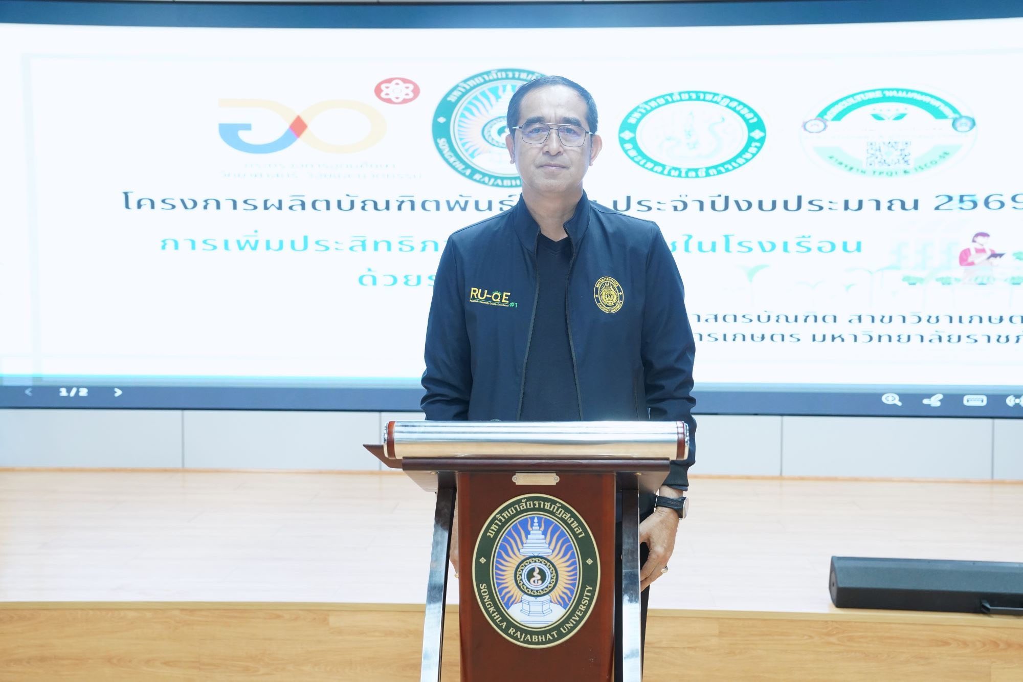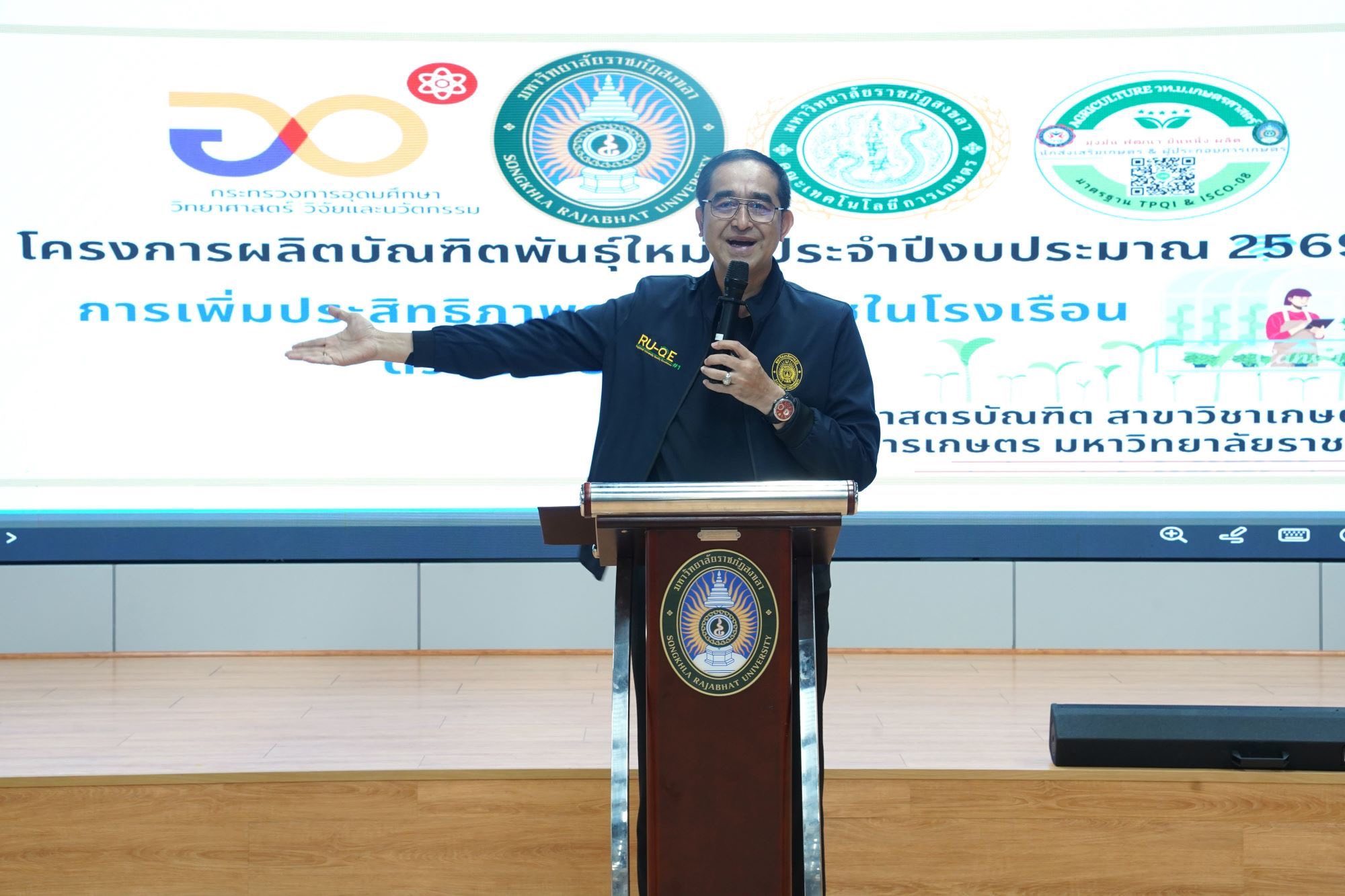 วันที่ 6 ธันวาคม 2568 ผศ.พิเชษฐ์ จันทวี อธิการบดีมหาวิทยาลัยราชภัฏสงขลา (มรภ.สงขลา) เป็นประธานในพิธีเปิดและปฐมนิเทศโครงการผลิตบัณฑิตพันธุ์ใหม่ รุ่นที่ 2 ประจำปี พ.ศ. 2568 หลักสูตรประเภทประกาศนียบัตร “การเพิ่มประสิทธิภาพการผลิตพืชโรงเรือนด้วยระบบอัตโนมัติ” ณ ห้องประชุมวิชัย รัตนากีรณวร คณะวิทยาศาสตร์และเทคโนโลยี มรภ.สงขลา กล่าวรายงานโดย ผศ.ดร.วนิดา เพ็ชร์ลมุล ประธานหลักสูตร วท.บ.เกษตรศาสตร์ คณะเทคโนโลยีการเกษตร มรภ.สงขลา