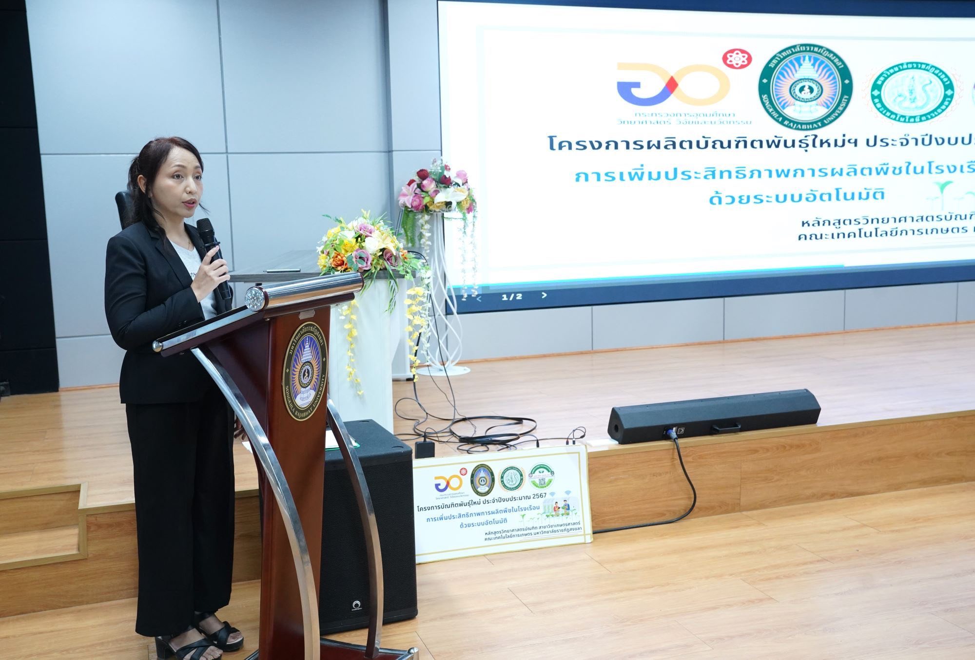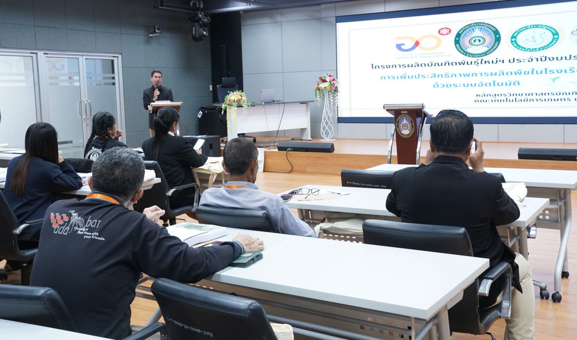 สำหรับผลการดำเนินโครงการผลิตบัณฑิตพันธุ์ใหม่ รุ่นที่ 1 เรื่อง “การเพิ่มประสิทธิภาพการผลิตพืชในโรงเรือนด้วยระบบอัตโนมัติ” ระหว่างเดือนตุลาคม 2567 ถึงเดือนมีนาคม 2568 รวมทั้งสิ้น 328 ชั่วโมง ครอบคลุมทั้งภาคทฤษฎีและปฏิบัติเรื่องเกษตรสมัยใหม่ ให้กับผู้เรียนทุกกลุ่ม ผลการดำเนินงานพบว่า มีผู้เข้าร่วมจำนวน 26 คน ผ่านการประเมิน 21 คน คิดเป็นร้อยละ 80.77 ซึ่งส่วนใหญ่สามารถพัฒนาทักษะด้านเทคโนโลยีการเกษตรได้ในระดับดี โครงการถือเป็นประโยชน์อย่างยิ่งในการเสริมสร้างความรู้และทักษะด้านการผลิตพืชในโรงเรือนด้วยระบบอัตโนมัติ ทั้งการ Up-skill และ Re-skill แก่ผู้เข้าร่วมอบรม