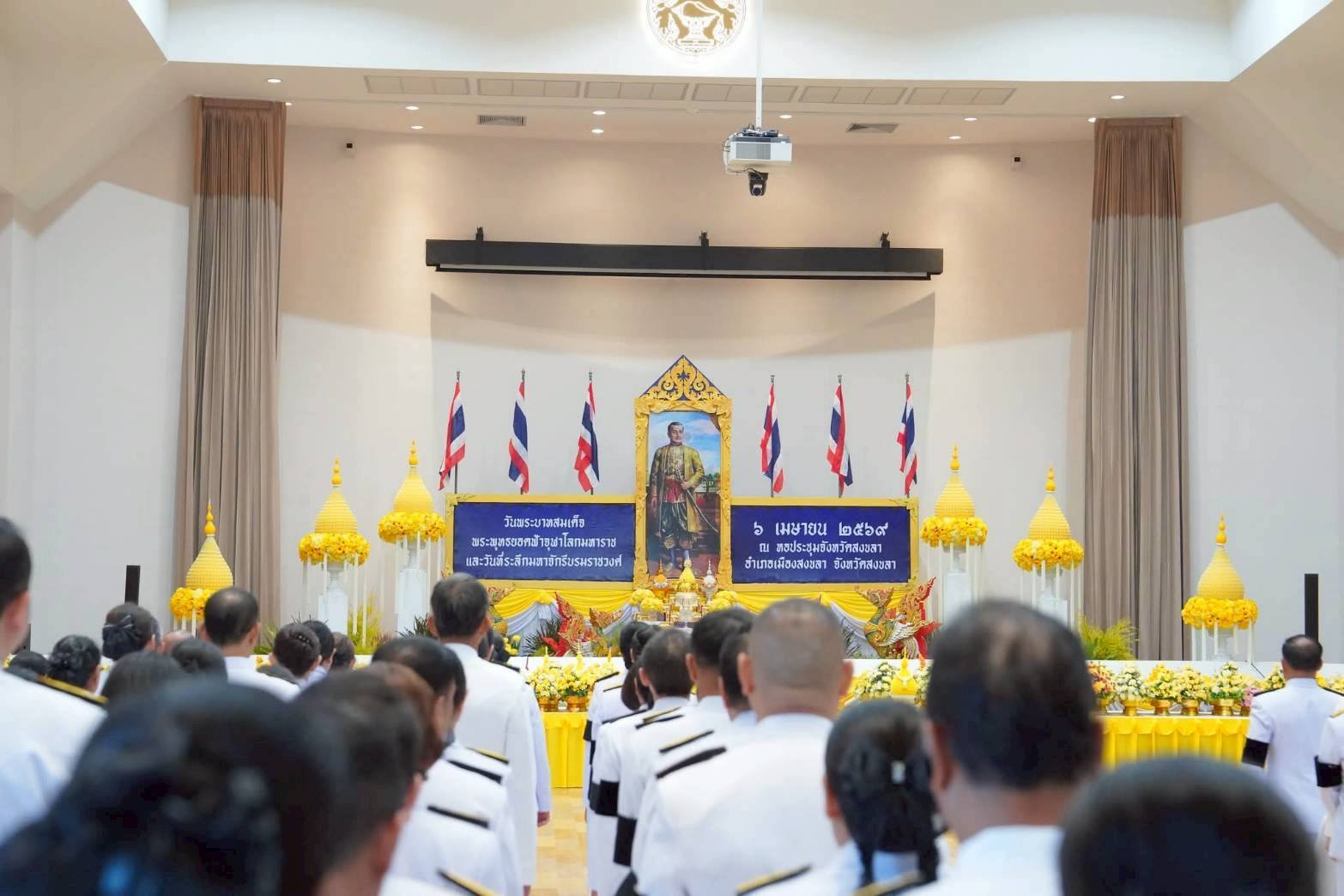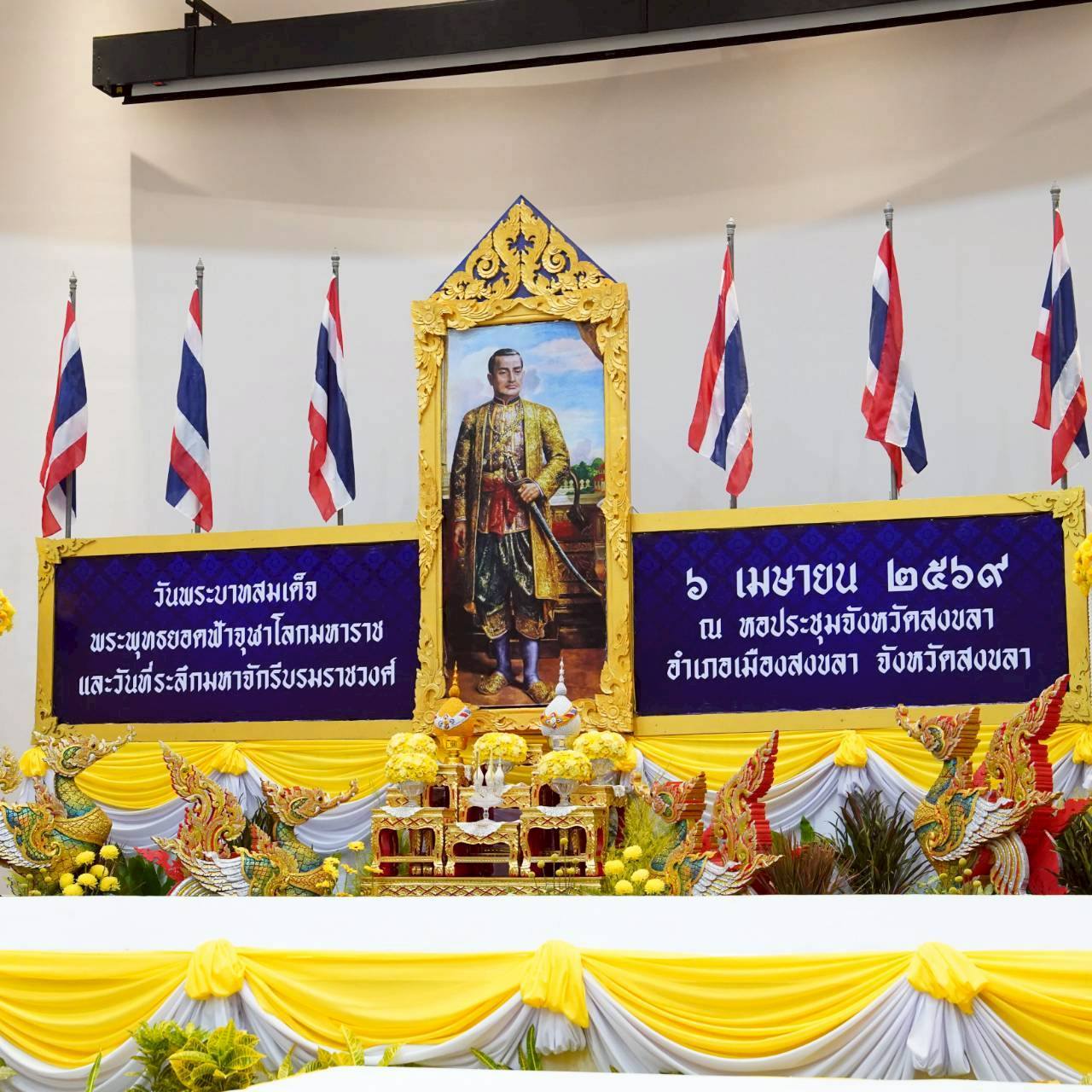 มรภ.สงขลา ร่วมพิธีถวายสักการะ เนื่องใน “วันพระบาทสมเด็จพระพุทธยอดฟ้าจุฬาโลกมหาราช และวันที่ระลึกมหาจักรีบรมราชวงศ์” (6 เมษายน) น้อมรำลึกในพระมหากรุณาธิคุณพระมหากษัตริย์พระองค์แรกแห่งราชวงศ์จักรี . วันที่ 6 เมษายน 2569 นางไปยดา สุตระ ปฏิบัติหน้าที่ในตำแหน่งผู้อำนวยการกองพัฒนานักศึกษา สำนักงานอธิการบดี มหาวิทยาลัยราชภัฏสงขลา (มรภ.สงขลา) พร้อมด้วย นายแวอัชมัน แวมูซอ ปฏิบัติหน้าที่ในตำแหน่งหัวหน้างานบริการและพัฒนานักศึกษา เป็นตัวแทนของมหาวิทยาลัยร่วมพิธีถวายราชสักการะเนื่องในวันพระบาทสมเด็จพระพุทธยอดฟ้าจุฬาโลกมหาราช และวันที่ระลึกมหาจักรีบรมราชวงศ์ ประจำปี พ.ศ. 2569 (วันที่ 6 เมษายน) จัดโดยจังหวัดสงขลา ณ หอประชุมจังหวัดสงขลา ศาลากลางจังหวัดสงขลา . ทั้งนี้ คณะรัฐมนตรีมีมติเมื่อวันที่ 27 เมษายน 2525 กำหนดให้วันที่ 6 เมษายน ของทุกปี เป็น “วันพระบาทสมเด็จพระพุทธยอดฟ้าจุฬาโลกมหาราช และวันที่ระลึกมหาจักรีบรมราชวงศ์” เพื่อเป็นการน้อมรำลึกในพระมหากรุณาธิคุณของพระบาทสมเด็จพระรามาธิบดีศรีสินทรมหาจักรีบรมนาถ พระพุทธยอดฟ้าจุฬาโลกมหาราช (รัชกาลที่ 1) ได้เสด็จปราบดาภิเษกขึ้นครองราชย์เป็นพระมหากษัตริย์พระองค์แรกแห่งราชวงศ์จักรี อีกทั้งยังเริ่มก่อสร้างพระนครแห่งใหม่ในนาม กรุงเทพมหานครบวรรัตนโกสินทร์